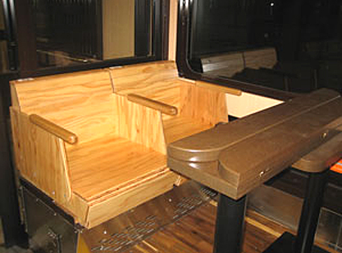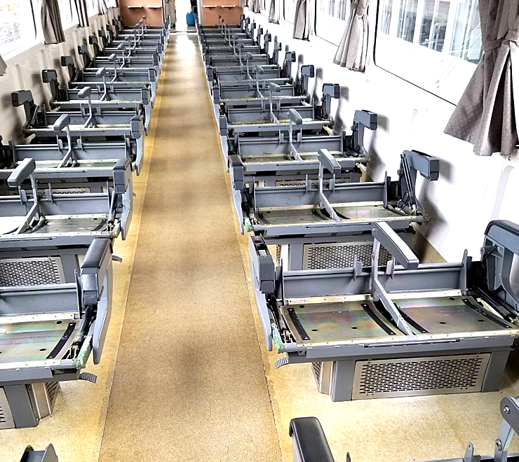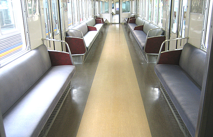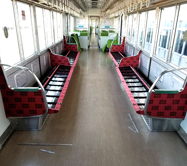 ![]() 天空 電車内座席 木製座席製作(防炎加工) |